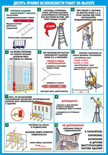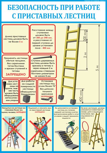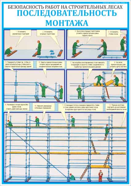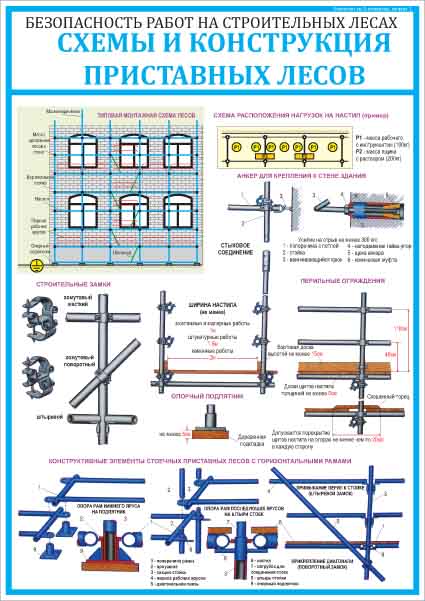Лист 1. Схемы и конструкция приставных лесов, Лист 2. Проверка и обустройство, Лист 3. Последовательность монтажа. Лист 4. Безопасность при работе с приставных лестниц. Лист 5. Десять правил безопасности работ на высоте. |