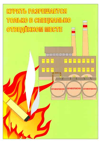 Лист 1. Курить разрешается только в специально отведенном месте. Лист 2 . Не разводи костры на территории предприятия. Лист 3.Умей пользоваться огнетушителем. Лист 4. Не пользуйся самодельными электронагревательными приборами. Лист 5. Не проливай горючие жидкости на пол. Лист 6. При загорании электроустановок под напряжением, гасите их углекислотными огнетушителями. Лист 7. Неисправная электропроводка-причина пожара. Лист 8. Не отогревай трубы открытым огнем. Лист 9. Десять правил пожарной безопасности. |