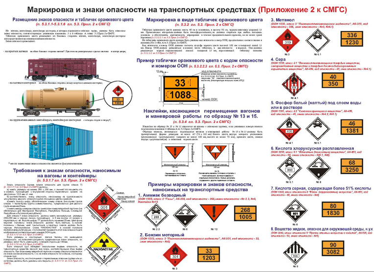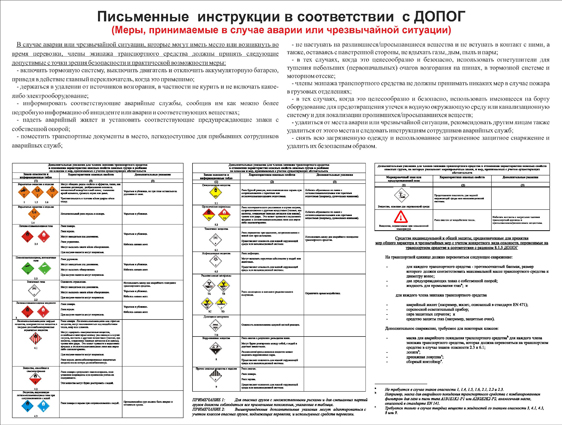 Лист 1. Маркироовка и знаки опасности на транспортных средствах Лист 2. Письменные инструкции в соответствии с ДОПОГ. |